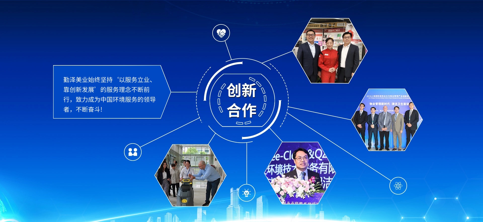 公司致力于把“勤澤美業”培育成眾口皆碑、令人尊敬、具有長期價值的服務領袖品牌。業務范圍涵蓋環境清潔和綜合設施管理服務,公司具備環衛、保潔、石材等多個行業一級資質,致力成為中國環境服務行業的領導者。